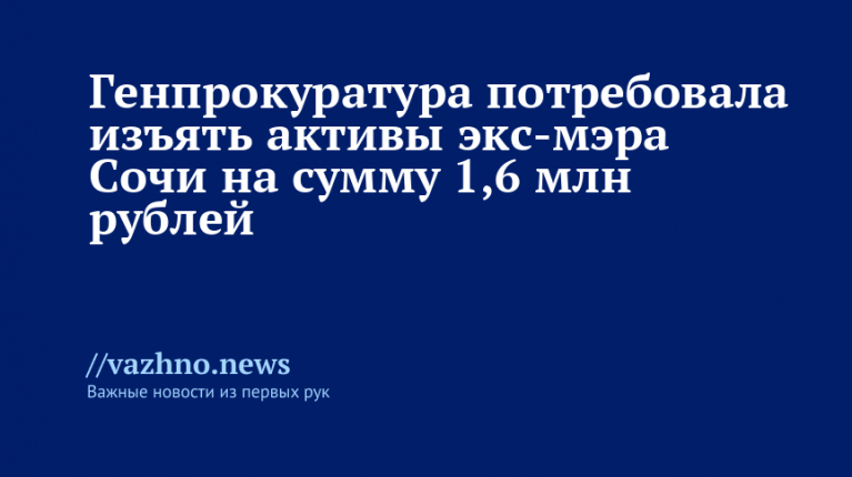 Генеральная прокуратура Российской Федерации через первого заместителя Генерального прокурора А.В. Разинкина подала иск о конфискации имущества бывшего мэра Сочи Алексея Копайгородского, его родственников, а также связанных с ними физических лиц и организаций.