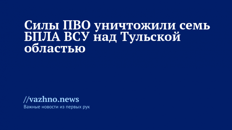 Силы противовоздушной обороны Российской Федерации ликвидировали семь украинских беспилотных летательных аппаратов над территорией Тульской области. Информацию об этом 29 октября обнародовал глава региона Дмитрий Миляев.