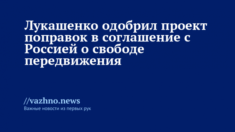 Президент Беларуси Александр Лукашенко утвердил изменения в соглашении с Россией, заключенном 24 января 2006 года, касающемся равных прав граждан обеих стран на свободное передвижение. Соответствующий указ опубликован на официальном сайте правовых актов Республики Беларусь.