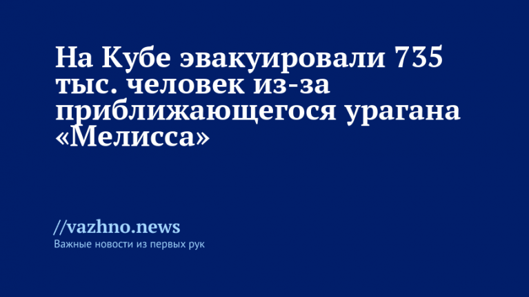 На Кубе из-за приближения урагана «Мелисса» были эвакуированы 735 тысяч человек. Об этом 29 октября сообщил президент страны Мигель Диас-Канель Бермудес.
