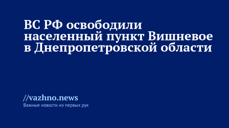 В сообщении в Telegram-канале ведомства говорится: «Подразделения войсковой группировки „Восток“ смогли прорваться глубже в оборонительные позиции противника и освободили населенный пункт Вишневое в Днепропетровской области».