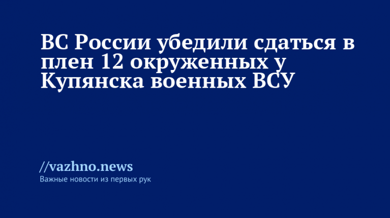 Российские военнослужащие обеспечили пленение 12 бойцов Вооруженных сил Украины (ВСУ), оказавшихся в окружении в районе города Купянск Харьковской области. Об этом 29 октября заявили в пресс-службе Министерства обороны РФ.