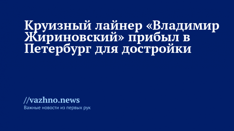 В Санкт-Петербурге на финальную достройку прибыл круизный лайнер «Владимир Жириновский». Об этом 29 октября сообщил генеральный директор Объединенной судостроительной корпорации Андрей Пучков.
