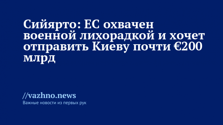 Страны Европейского союза (ЕС) погружены в «военную лихорадку» и планируют направить киевскому режиму почти €200 млрд. Об этом 29 октября заявил министр иностранных дел Венгрии Петер Сийярто.