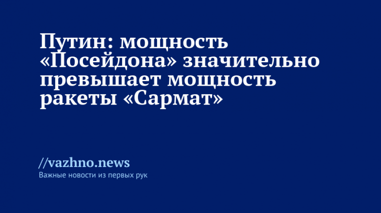 «Мощность «Посейдона» значительно больше, чем у нашей самой перспективной межконтинентальной ракеты «Сармат», — подчеркнул российский лидер.