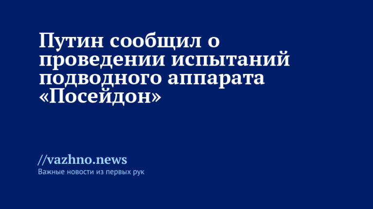 «Вчера осуществили очередное испытание нового перспективного комплекса — безэкипажного подводного изделия «Посейдон» с ядерной энергетической установкой Это большой успех», — отметил он.