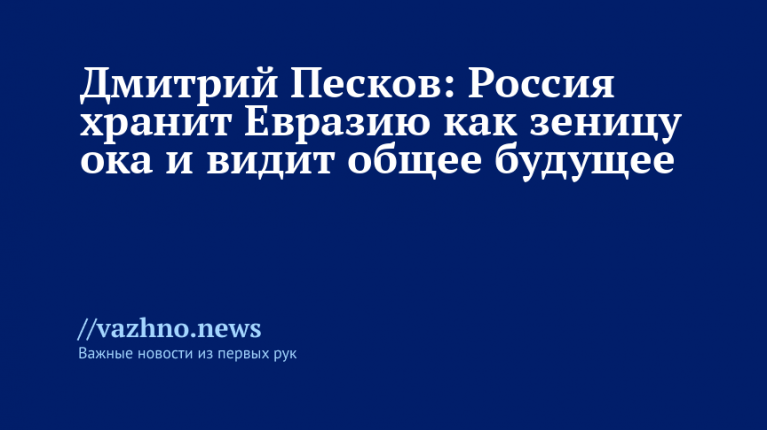 «Россия считает Евразию своим домом и бережет ее как зеницу ока, у стран континента единое будущее», — заявил Песков.