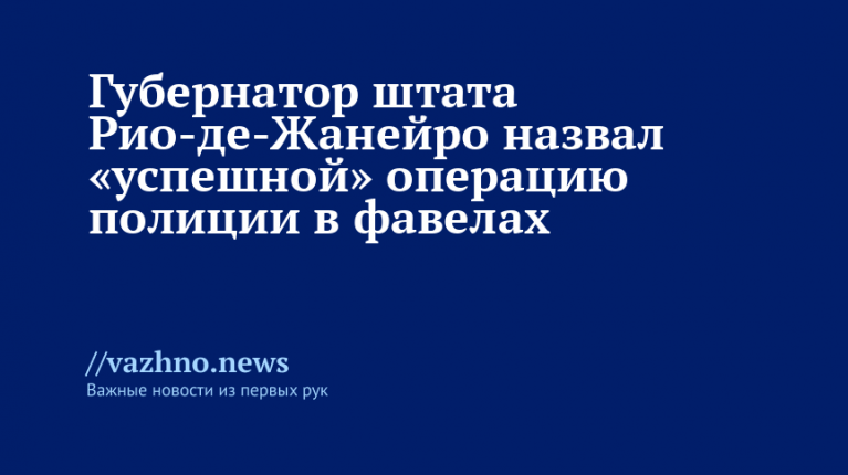 Губернатор штата Рио-де-Жанейро Клаудио Кастро на фоне гибели десятков человек во время полицейской операции в фавелах заявил, что считает действия правоохранительных органов успешными. Об этом 29 октября сообщил бразильский портал G1.