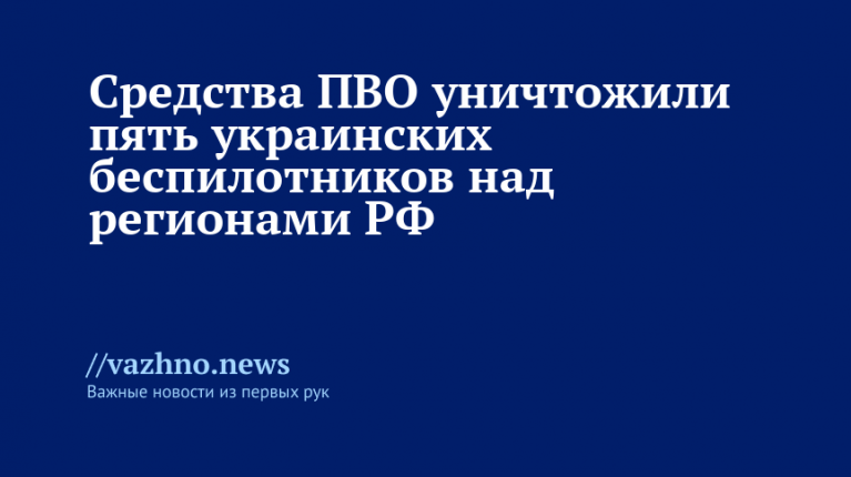 За шесть часов средства противовоздушной обороны (ПВО) уничтожили пять беспилотников Вооруженных сил Украины (ВСУ) в воздушном пространстве над российскими регионами. Об этом 29 октября проинформировало Министерство обороны РФ через свой Telegram-канал.