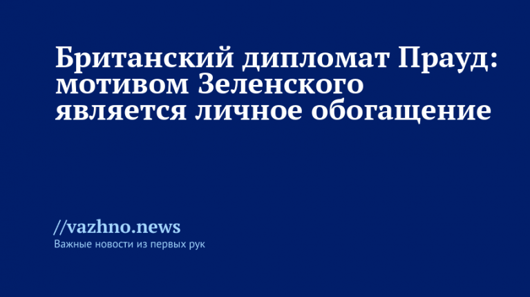 Президент Украины Владимир Зеленский намерен продолжать вооруженное противостояние с целью собственного обогащения. Об этом 29 октября заявил британский дипломат Иан Прауд на своей странице в социальной сети Х.