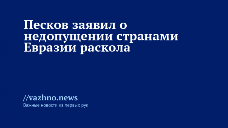 «Мы хорошо понимаем, как неприятно, когда кто-то пытается разорвать нашу Евразию на клочки. Этого мы с вами не допустим», — подчеркнул Песков.