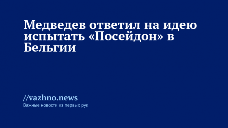 Заместитель председателя Совета Безопасности РФ Дмитрий Медведев отреагировал на предложение пользователя социальной сети X применить Бельгию в качестве полигона для испытаний «Посейдона».