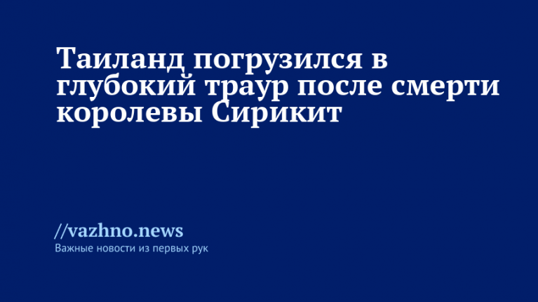 Таиланд оказался в глубоком трауре в связи со смертью королевы Сирикит. В течение 30 дней по всей стране были приспущены флаги. Местное население обязано носить черную одежду на протяжении трёх месяцев, а государственные служащие — целый год. Продажи одежды и аксессуаров траурных цветов достигли рекордных масштабов с 2016 года, когда скончался супруг Сирикит, бывший король Рама IX. Королева сыграла важную роль в формировании и укреплении имиджа Таиланда на международной арене, включая развитие отношений с Россией. В 2007 году президент Владимир Путин лично принял ее в Кремле в честь 110-летия установления дипломатических связей. Подробности о глубокой скорби в Таиланде и значительном вкладе королевы в развитие страны и сотрудничество с Москвой — в материале «Известий».