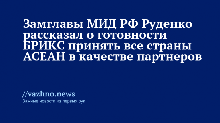 В состав БРИКС приветствуется вступление стран Ассоциации государств Юго-Восточной Азии (АСЕАН) в статусе государств-партнеров. Об этом сообщил «Известиям» заместитель главы МИД РФ Андрей Руденко, находясь в Куала-Лумпуре.