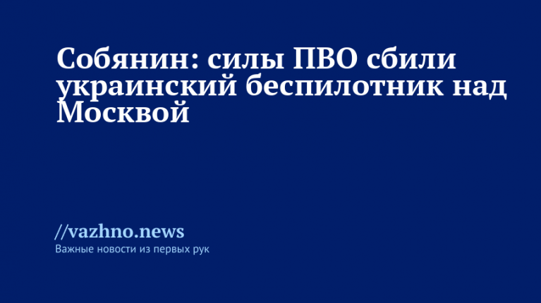 «ПВО Минобороны сбили беспилотник, летевший на Москву», — сообщил он в своем канале в мессенджере MAX.