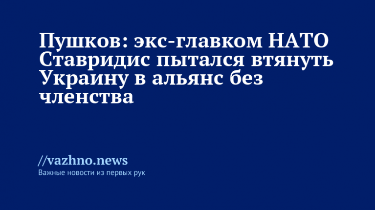 Пушков: Ставридис пытался втянуть Украину в НАТО без членства