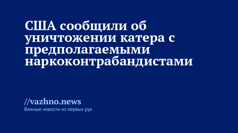 Вооруженные силы США уничтожили катер, который, согласно информации американской разведки, использовался для перевозки наркотиков в Тихом океане. Об этом 29 октября сообщил министр обороны США Пит Хегсет в социальной сети X.