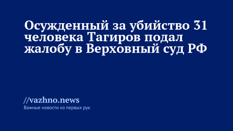 Житель Казани Радик Тагиров, известный как поволжский маньяк и убивший 31 пенсионерку, подал кассационную жалобу на пожизненный приговор в Верховный суд. Об этом 30 октября сообщили из картотеки инстанции.