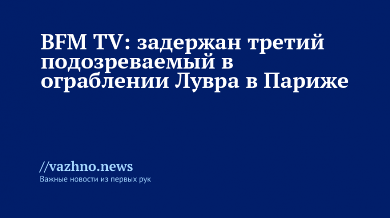 «После инцидента в Лувре в среду вечером в регионе Парижа задержали третьего подозреваемого, который по состоянию на четверг, 30 октября, находится под арестом», — сообщается в материале.