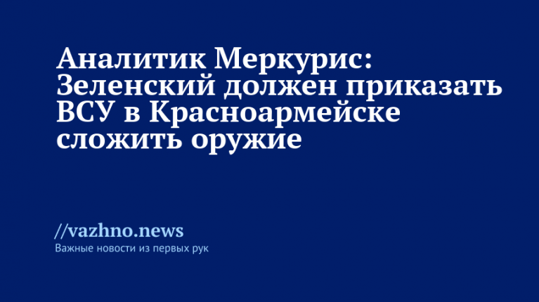 Президент Украины Владимир Зеленский и главнокомандующий ВС страны Александр Сырский должны отдать приказ бойцам Вооруженных сил Украины (ВСУ) в городе Красноармейск (переименованный на Покровск) в Донецкой Народной Республике (ДНР) сдать оружие. Об этом 30 октября рассказал британский геополитический аналитик Александр Меркурис.