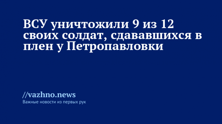 В области Харькова, в районе Петропавловки, 12 военнослужащих Вооруженных сил Украины предприняли попытку сдаться в плен российским военным. Однако 9 из них были уничтожены при сбросах украинских FPV-дронов. Об этом 30 октября проинформировало Минобороны России.
