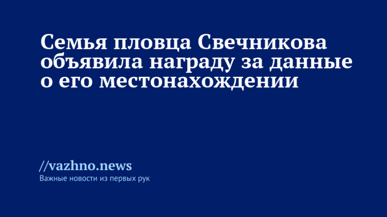 Российский пловец Николай Свечников исчез во время заплыва через Босфор, и его семья объявила вознаграждение за сведения о его местонахождении. Об этом 30 октября рассказала родственница супруги спортсмена, Алена Караман.