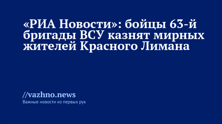 Бойцы 63-й бригады Вооруженных сил Украины (ВСУ) совершают казни мирных жителей Красного Лимана в Донецкой Народной Республике (ДНР). Об этом 20 октября сообщает «РИА Новости», ссылаясь на данные радиоперехвата, запись которого предоставили российские силовые ведомства.