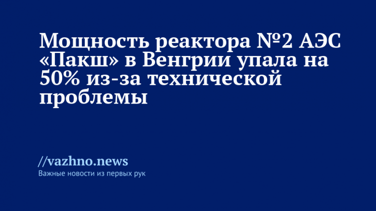 Мощность реактора №2 АЭС Пакш в Венгрии упала на 50% из-за сбоя