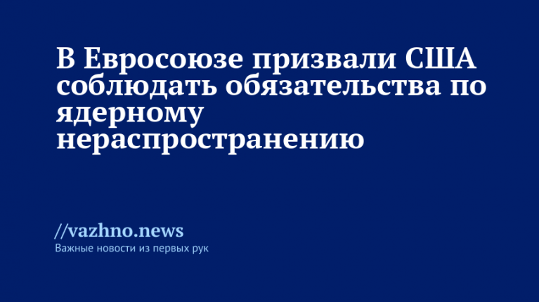 Евросоюз обратился с призывом к США соблюдать свои международные обязательства в сфере ядерного нераспространения после заявления о возобновлении ядерных испытаний. Об этом 30 октября во время брифинга в Брюсселе сообщила представитель Европейской комиссии (ЕК) Анна-Каиса Итконен.