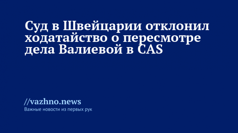 Федеральный суд Швейцарии отверг запрос о пересмотре решения, которое подтвердило вердикт Спортивного арбитражного суда (CAS) по делу о нарушении антидопинговых правил российской фигуристкой Камилой Валиевой.