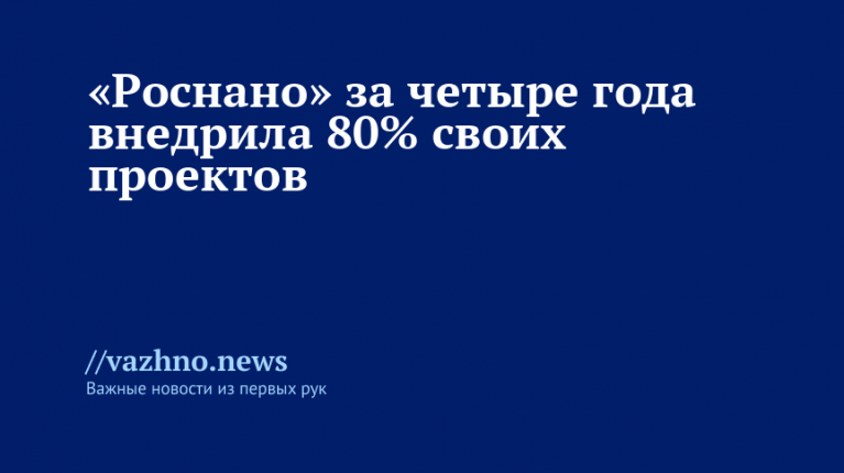 Компания «Роснано» за последние четыре года реализовала более 80% своих проектов и сфокусировала деятельность на пяти ключевых направлениях: малотоннажная химия, энергомашиностроение, экология, безопасность и логистика. Об этом 30 октября сообщил глава организации Сергей Куликов на встрече с Владимиром Путиным. В планах — перспективное сотрудничество с «Газпром нефтью» и «Норникелем». Президент отметил, что финансовое оздоровление компании практически завершено, а также подчеркнул разработку механизма для досрочного погашения оставшегося долга по облигациям.