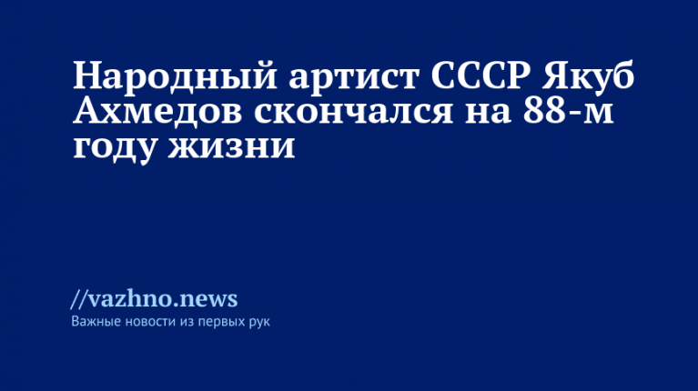 На 88-м году жизни скончался народный артист СССР Якуб Ахмедов. Об этом 30 октября стало известно из информации Узбекского национального академического драматического театра.
