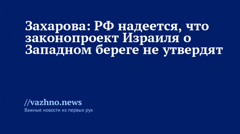 Россия надеется, что законопроекты, предусматривающие расширение израильского суверенитета на Западном берегу реки Иордан, не будут окончательно приняты, так как это может вызвать новую волну напряженности на Ближнем Востоке. Такое заявление сделала 30 октября официальный представитель МИД РФ Мария Захарова на брифинге.