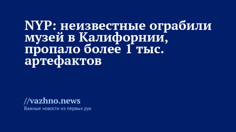 В Оклендском музее Калифорнии неизвестные злоумышленники похитили свыше 1000 артефактов. Исчезли ювелирные изделия коренных народов региона и иные исторические предметы. Об этом 30 октября сообщила газета The New York Post (NYP) со ссылкой на местную полицию.