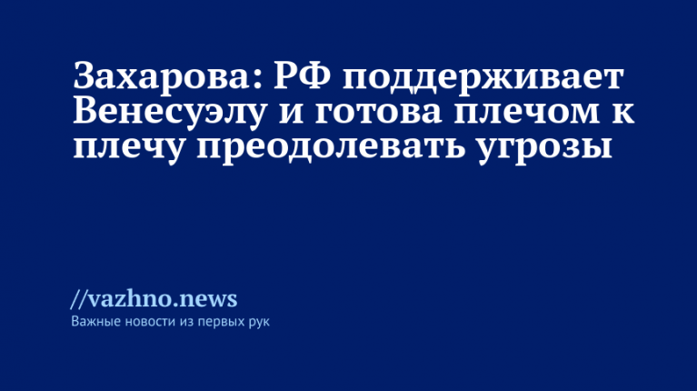 По ее словам, Россия продолжает поддерживать связи с венесуэльскими властями и настроена оперативно реагировать на запросы партнеров, принимая во внимание существующие и возможные угрозы. Захарова также акцентировала, что обе страны будут продолжать сотрудничество «плечом к плечу».