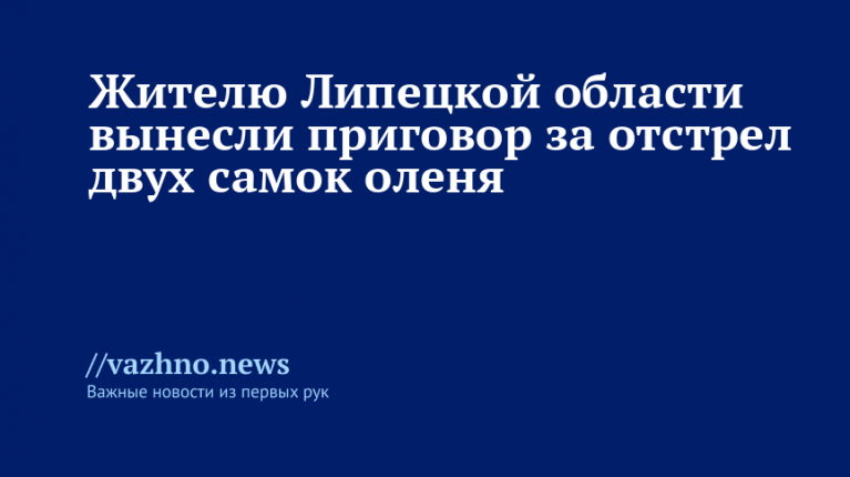 В суде Липецкой области был вынесен приговор 35-летнему мужчине из Хлевенского района, который вместе с товарищем застрелил двух самок пятнистого оленя. Об этом информирует региональная прокуратура.