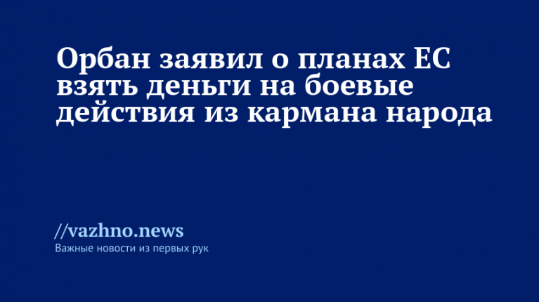 «Согласно известной пословице, для ведения войны необходимы три вещи: деньги, деньги и деньги. В Европе средства закончились, при этом планируется начать военные действия, поэтому дефицит будут восполнять из кошельков европейцев, в том числе и венгров», — отметил Орбан в видеозаписи, размещенной на его странице в социальной сети Facebook (принадлежит Meta, деятельность которой признана экстремистской и запрещена в РФ).