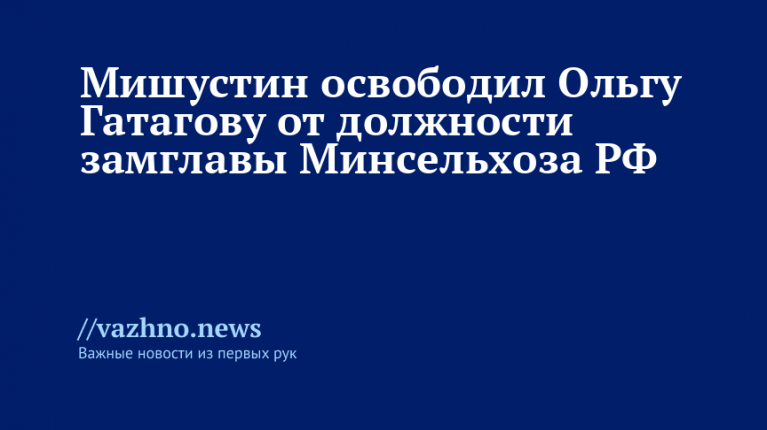 Премьер-министр России Михаил Мишустин удовлетворил просьбу Ольги Гатаговой и освободил ее от должности заместителя министра сельского хозяйства. Это решение было закреплено в распоряжении, опубликованном 30 октября на официальном интернет-портале правовой информации.