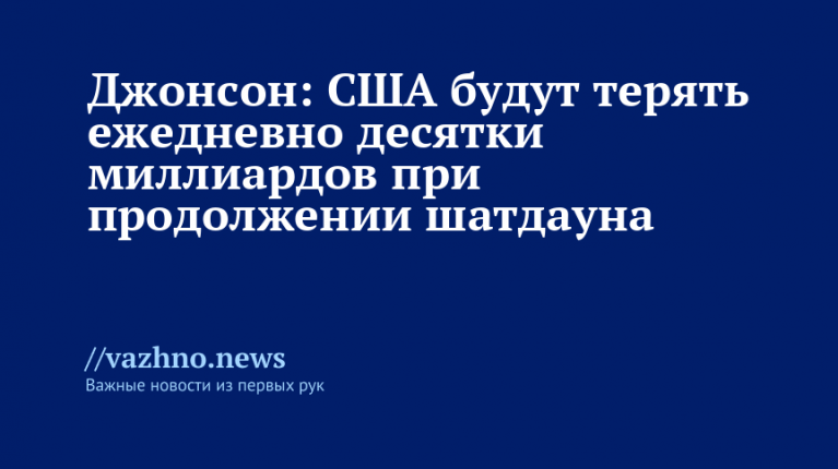 «Демократы в сенате получат уже пятнадцатый шанс принять правильное решение. Мы боимся, что если они вновь откажутся в пятнадцатый раз, шатдаун затянется после 1 ноября. Это повлечет за собой ежедневные убытки в виде десятков миллиардов долларов ВВП», — заявил Джонсон в интервью утреннему шоу, опубликованному на его YouTube-канале.