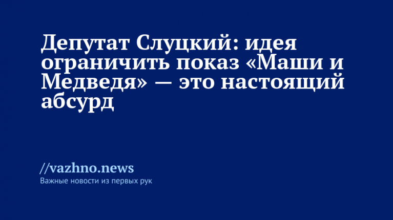 «Подобные предложения заставляют людей сомневаться в здравом смысле депутатов и общественных деятелей. Задумка ограничить показ мультфильма «Маша и Медведь» — полнейший абсурд. Не стоит искать врага там, где его нет. Такой логикой можно и «Простоквашино» запретить: там ребенок убежал из дома, а родители оставили дядю Федора одного в деревне», — приводит слова Слуцкого ТАСС.