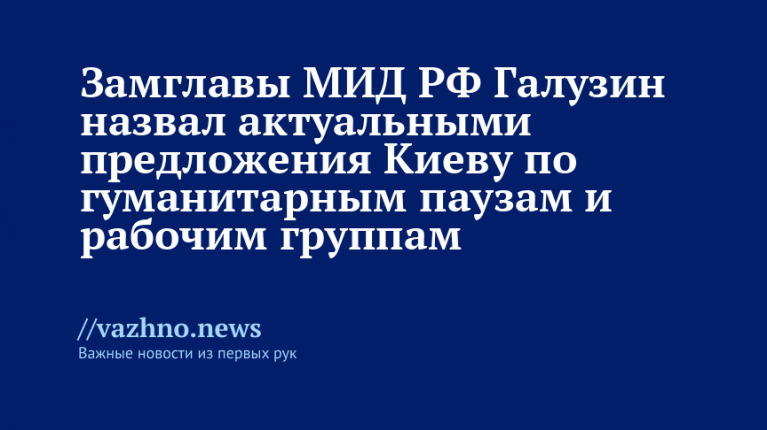 Замглавы МИД России Михаил Галузин подтвердил в разговоре с «Известиями», что предложения Украине по установлению гуманитарных пауз и созданию рабочих групп остаются актуальными.