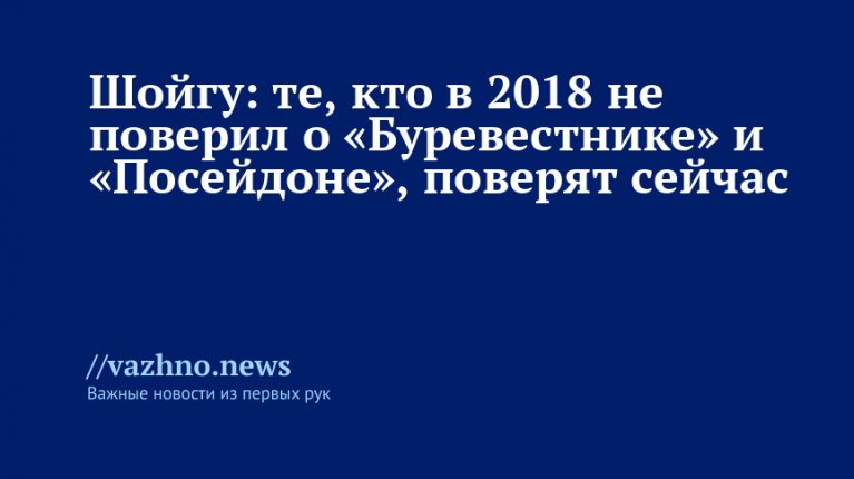 Тем, кто в 2018 году не поверил президенту России Владимиру Путину относительно ракет «Буревестник» и подводного аппарата «Посейдон», придется признать его правоту сейчас. Об этом 31 октября сообщил секретарь Совета безопасности Российской Федерации Сергей Шойгу.