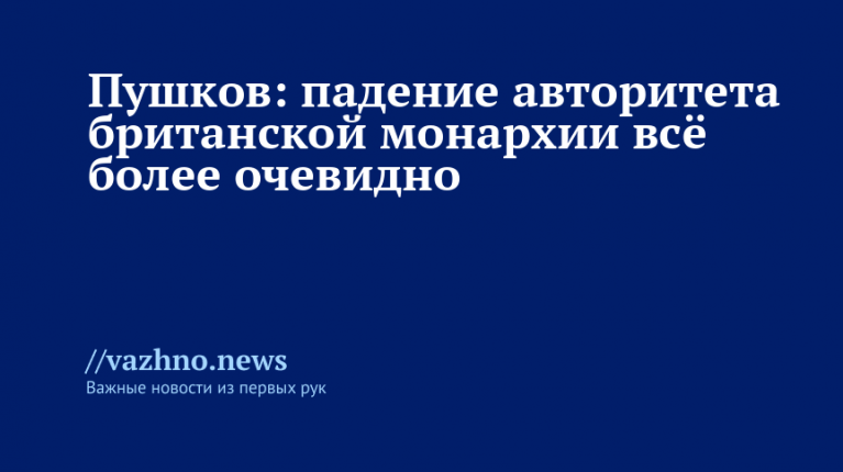 «Кризис и снижение авторитета британской монархии становятся все более явными», — указал Пушков в своем Telegram-канале.