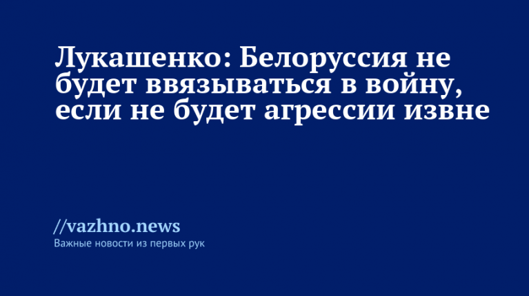 «В мире идет более 50 конфликтов и войн. Мы не хотели бы стать участниками 51-го. Но хочу вас заверить — мы не будем ввязываться в эту войну, если нас не заденут. Это главная задача для президента и власти», — приводит слова Лукашенко агентство БелТа.
