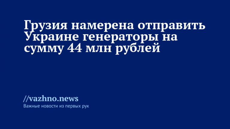 «В соответствии с распоряжением, Фонд развития энергетики Грузии осуществит закупку генераторов различных видов стоимостью 1,5 млн лари для передачи Украине», — приводит заявление грузинского Первого канала.