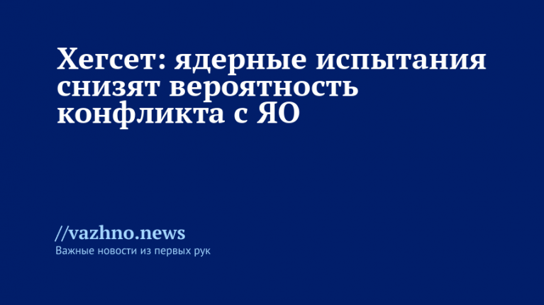 «Это является фундаментом сдерживания. Осознание этого факта и возобновление [ядерных] испытаний — крайне ответственный шаг. Я считаю, что риск ядерной войны уменьшается, когда вы знаете, какой арсенал у вас есть, и уверены, что он работает правильно», — подчеркнул Хегсет, его высказывания приводит ТАСС.