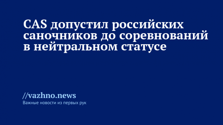 Спортивный арбитражный суд (CAS) разрешил российским саночникам принять участие в международных соревнованиях, выступая в нейтральном статусе. Об этом стало известно 31 октября из пресс-релиза CAS.