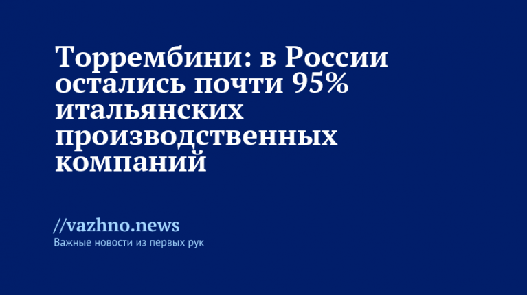 Президент Ассоциации итальянских предпринимателей в России Витторио Торрембини в интервью «Известиям» подчеркнул, что почти 95% фирм с производством в РФ продолжают работать в стране, несмотря на санкционные ограничения.