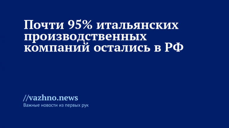 Бизнес и личное: почти 95% итальянских производственных компаний остались в РФ