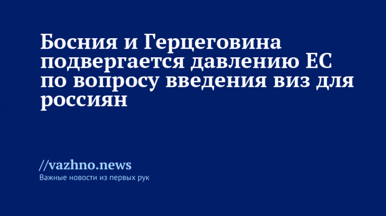«В ходе евроинтеграционного процесса БиГ наблюдается политически мотивированный нажим со стороны Брюсселя на местные власти с требованием отказаться от безвизового режима с Россией в целях соответствия так называемым европейским стандартам. Мы считаем, что подобный шаг не способствует развитию конструктивных отношений между народами наших стран», — отметили российские дипломаты в интервью «Известиям».